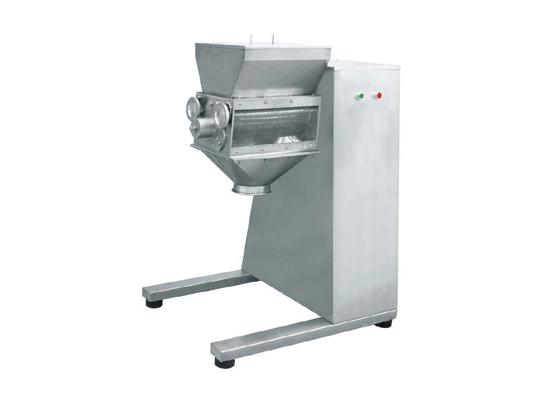搖擺式顆粒機運行時,加料理和篩網位置的松緊直接影響制得顆粒的質量。加料斗中加料量多而篩網夾得比較松時,由于滾筒旋轉時能增加軟材通過篩網的次數,均能使得的顆粒堅硬。
