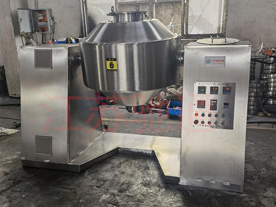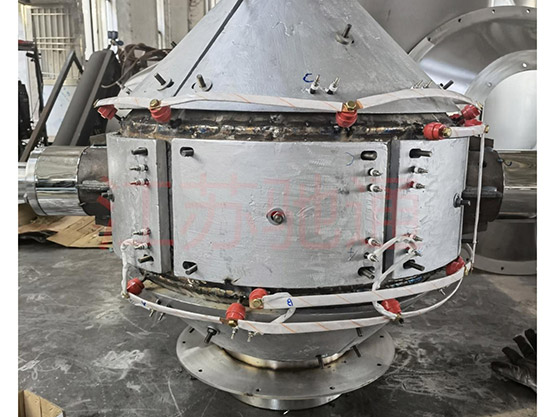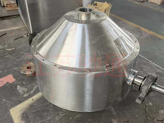 雙錐真空干燥機通過大小齒輪連接方式傳動,因而設備運行平穩(wěn)。特別設計的工裝,充分體現(xiàn)了兩支軸的良好同心,真空系統(tǒng)均采用可靠的機械密封,給電系統(tǒng)采用旋轉(zhuǎn)滑環(huán)。在此基礎(chǔ)上,熱媒采用特制電加熱板復合內(nèi)膽加熱,它既可調(diào)功率,又能進行分路控制電熱板加熱,從而達到罐內(nèi)物料均勻干燥效果。此雙錐真空干燥機特別適用于新能源與金屬粉末的干燥,解決了以往長時間使用導熱油加熱產(chǎn)生油垢而升不上溫度的缺點。該改良后的設備操作簡單,維護方便,使用壽命長。